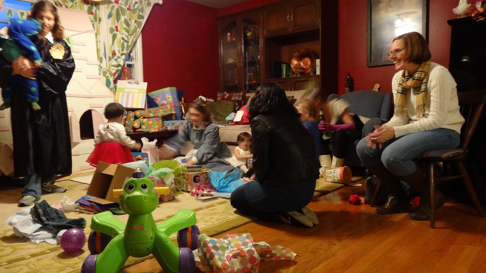 She loves books and to climb into enclosed spaces--especially her castle which we kept in the living room after her birthday party. She shows every new person who comes to the house all her new toys and books. This week she started having a babysitter come for three hours two days a week so mommy and daddy can get some more time to do research at school.